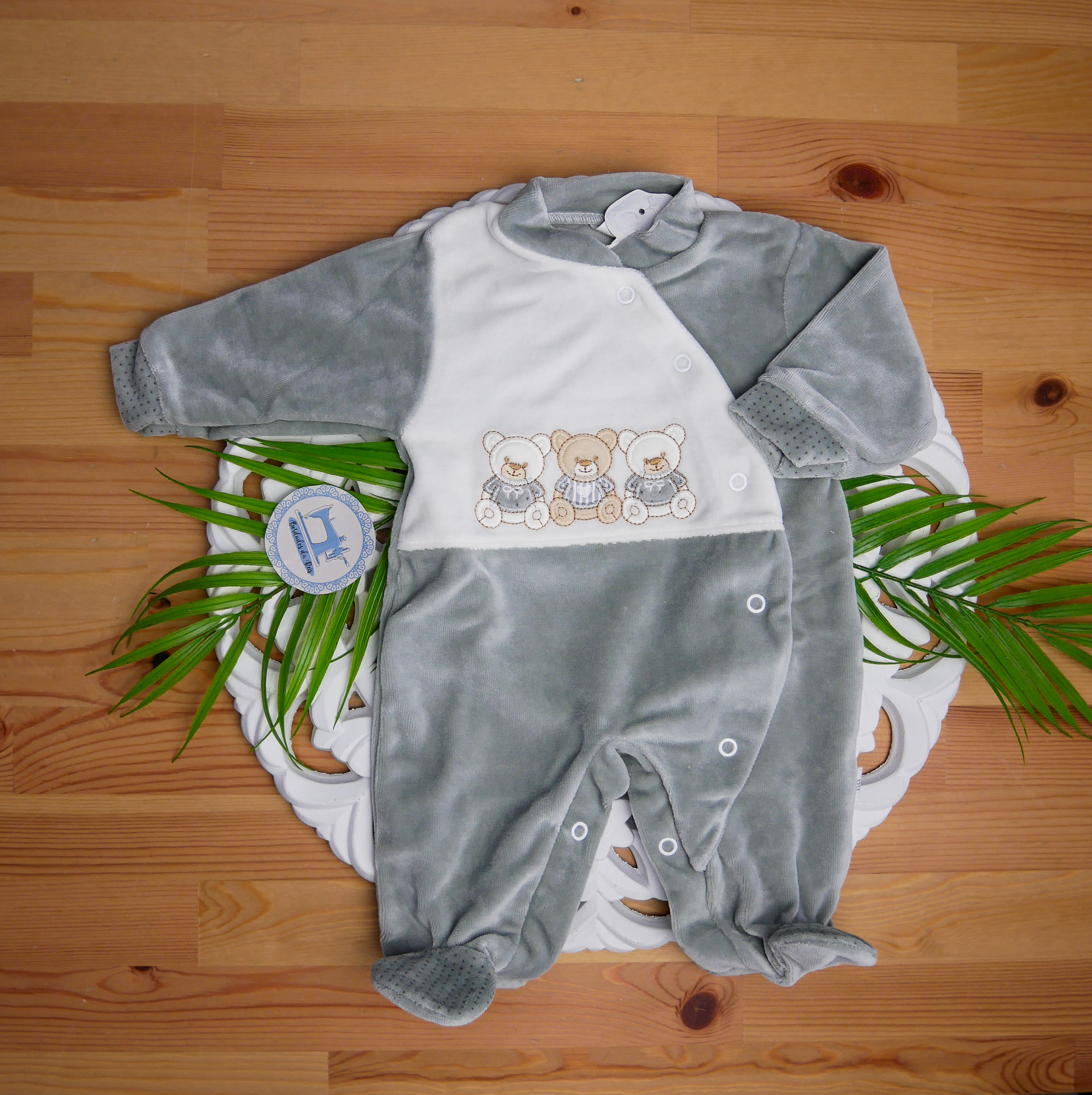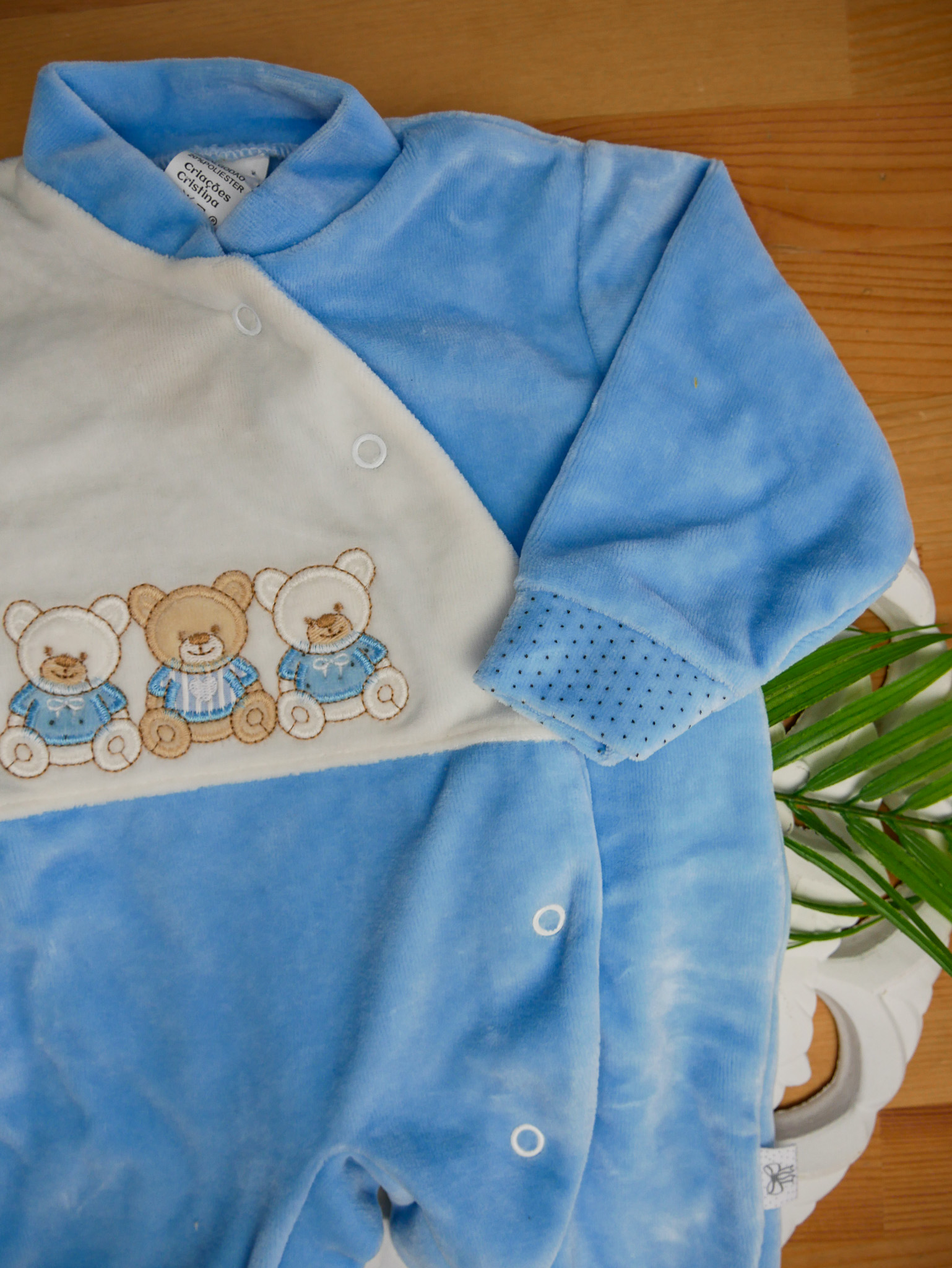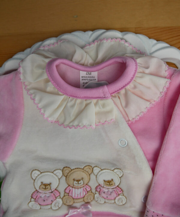 Babygrow em veludo suave com 3 ursinhosbordados.