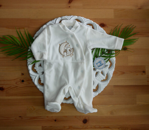 Garanta o máximo de conforto e estilo para o seu bebé com este babygrow feito com tecido de veludo. Perfeito para manter a pele do bebé confortável durante todo o dia.