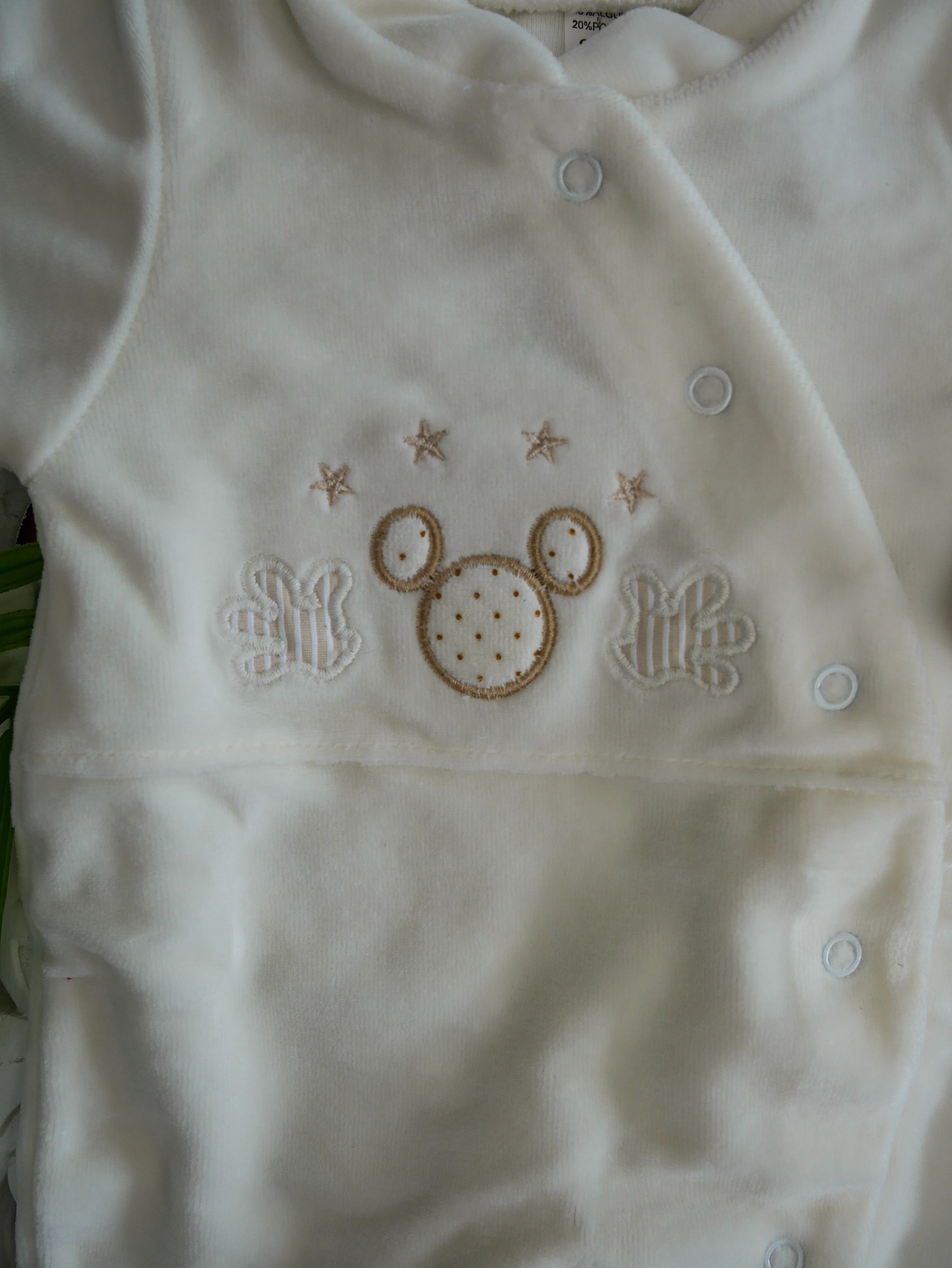 Garanta o máximo de conforto e estilo para o seu bebé com este babygrow feito com tecido de veludo. Perfeito para manter a pele do bebé confortável durante todo o dia.