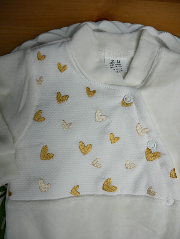 - Babygrow macio e confortável: Feito em veludo de alta qualidade, o babygrow oferece um toque suave e confortável, ideal para a pele sensível do bebé.