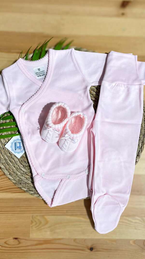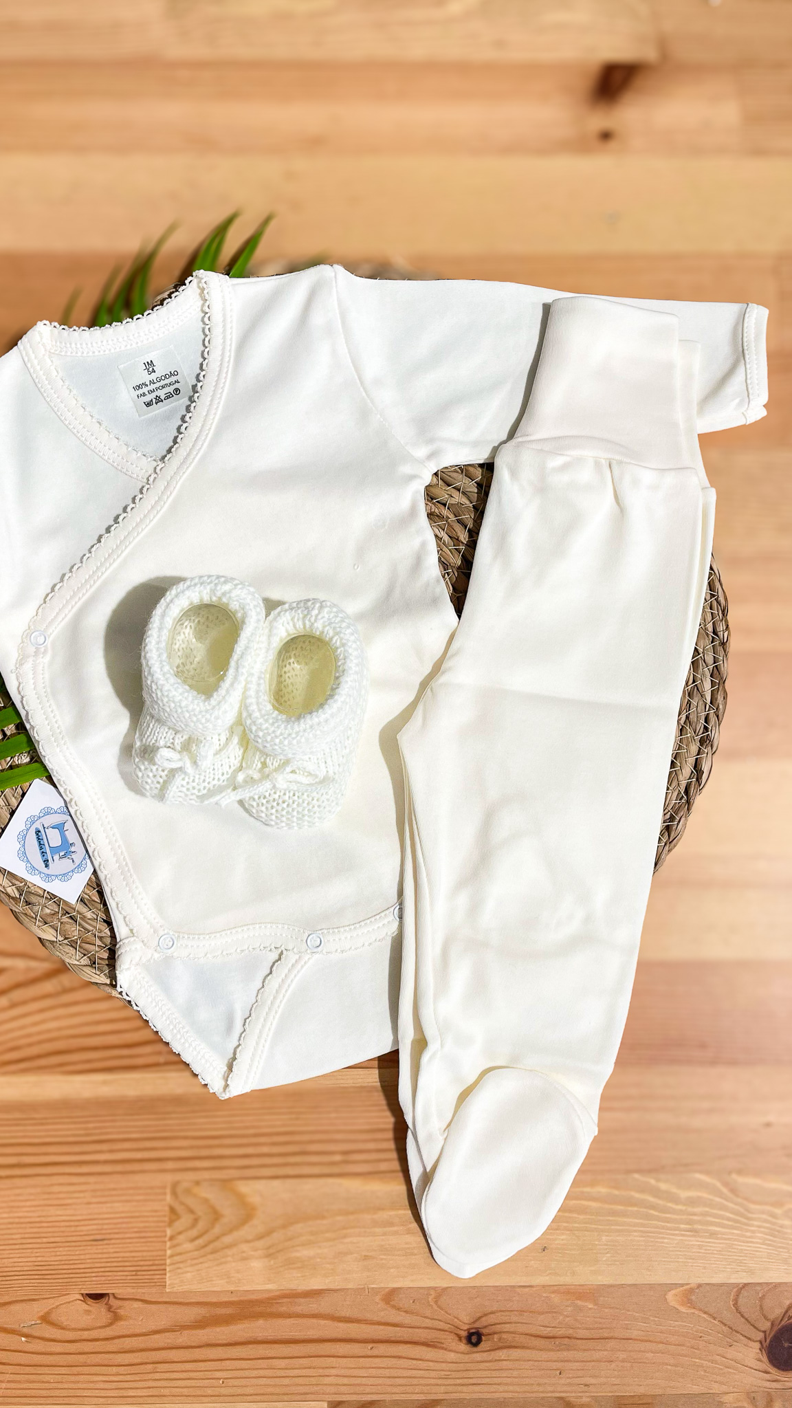 O Conjunto de Interiores Simples é um dos essenciais mais importantes para a maternidade, garantindo conforto e praticidade para o dia-a-dia do seu bebé. Composto por um body e calças interiores, este conjunto oferece o equilíbrio perfeito entre suavidade, liberdade de movimento e facilidade de uso.