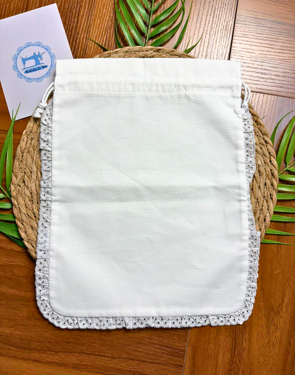 Além disso, os saquinhos são leves e fáceis de transportar. Assim, ocupam pouco espaço na mala, mantendo simultaneamente as roupas protegidas. Ao mesmo tempo, o detalhe em folho confere elegância e delicadeza, tornando este conjunto não apenas funcional, mas também visualmente encantador.