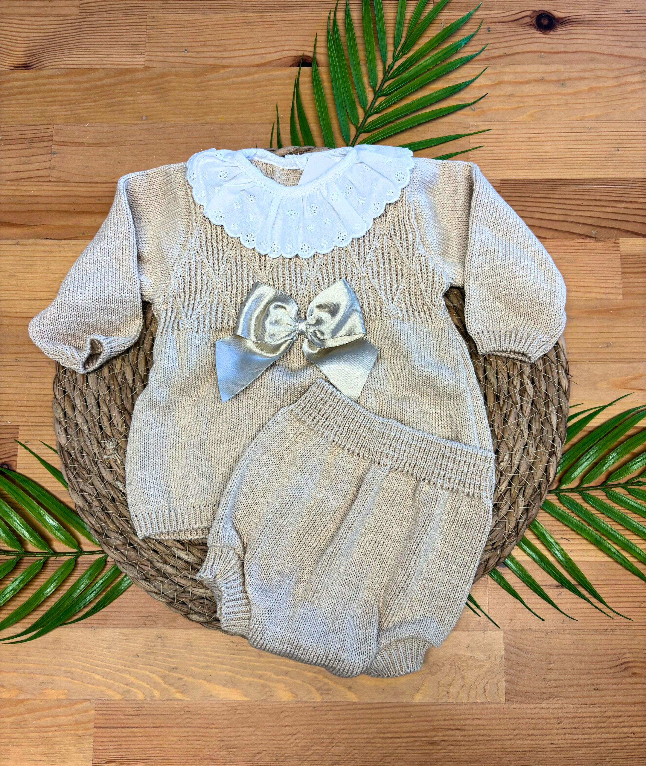 Além disso, este conjunto de malha adapta-se facilmente a diferentes estações do ano, sendo perfeito para dias amenos de primavera ou verão, bem como para interiores mais frescos.