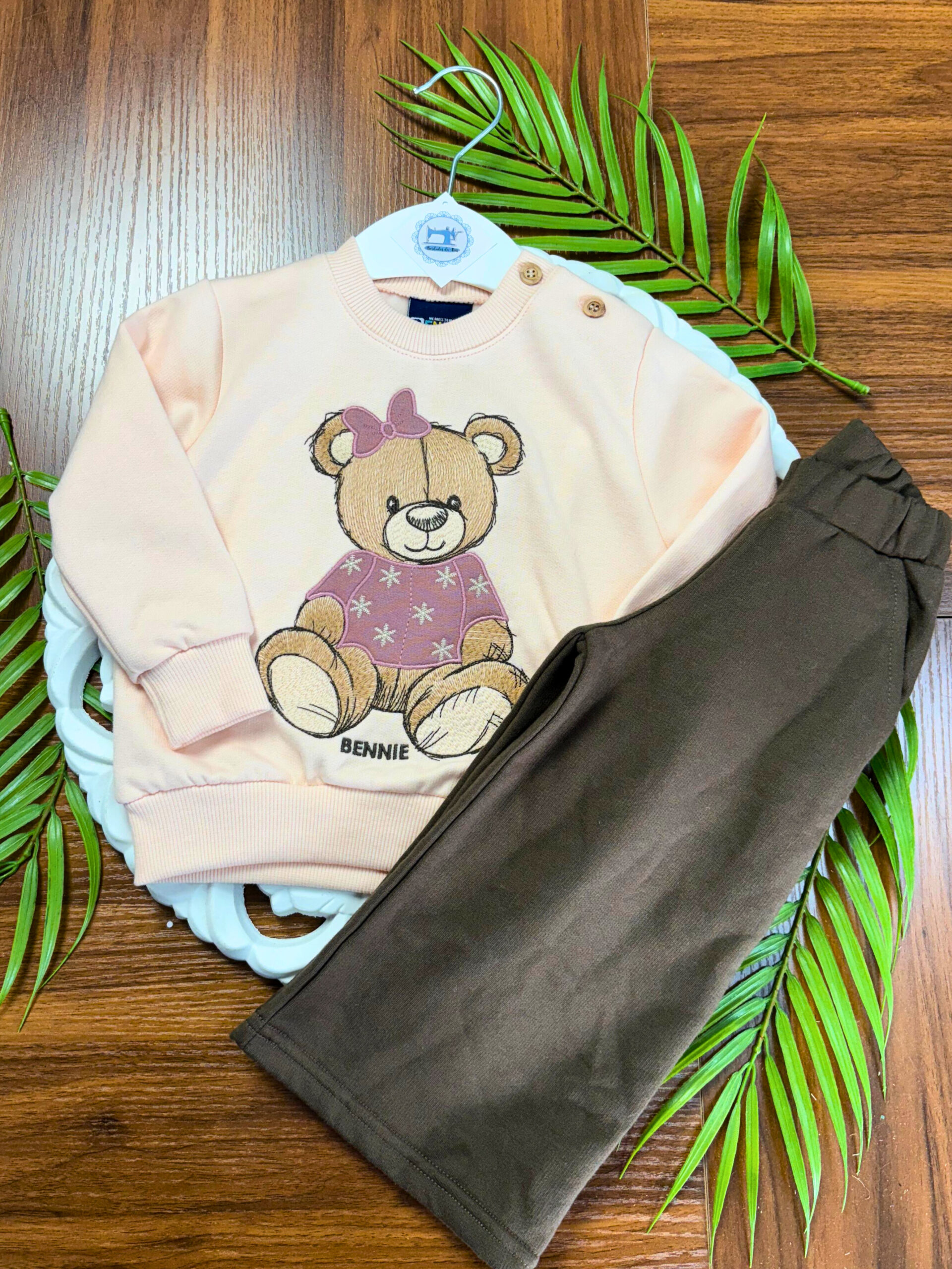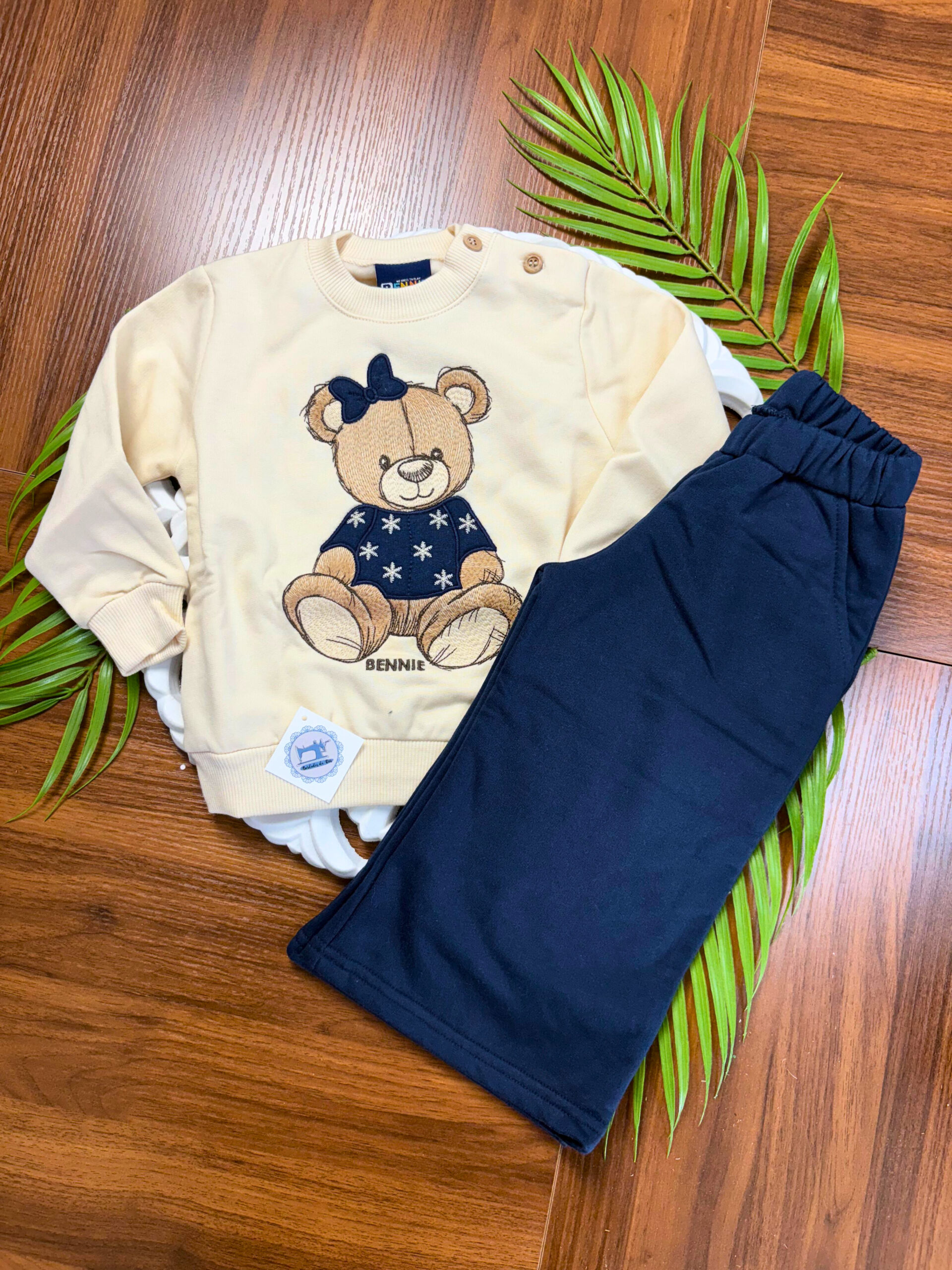 Este conjunto combina um estilo casual com um toque delicado, o que o torna perfeito para diversas ocasiões. Além disso, o padrão de Ursinho acrescenta charme e personalidade ao visual.
