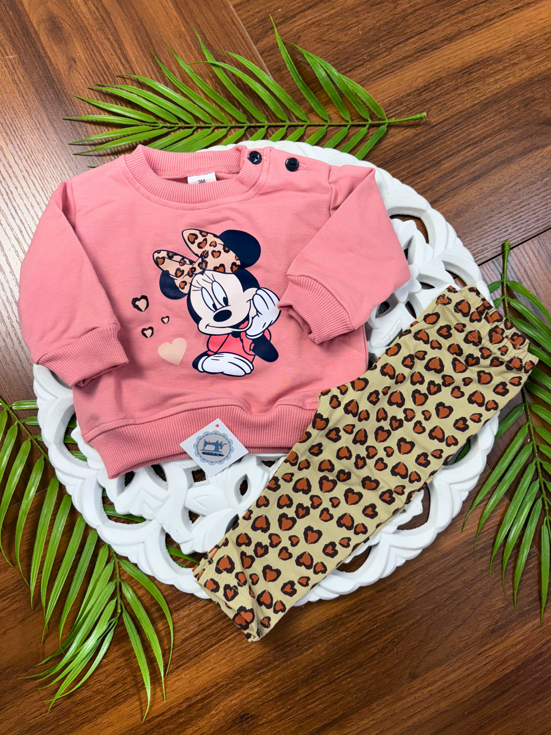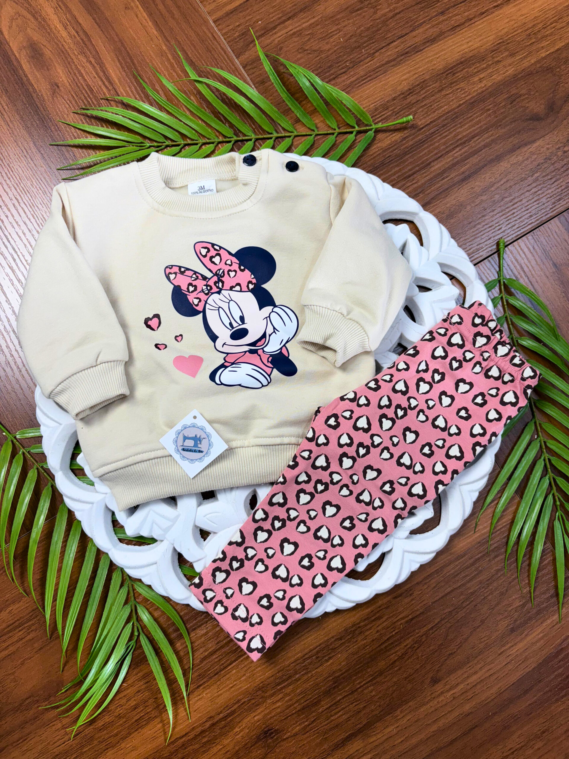 Este conjunto combina um estilo casual com um toque delicado, o que o torna perfeito para diversas ocasiões. Além disso, o padrão Minnie Tigresa acrescenta charme e personalidade ao visual.