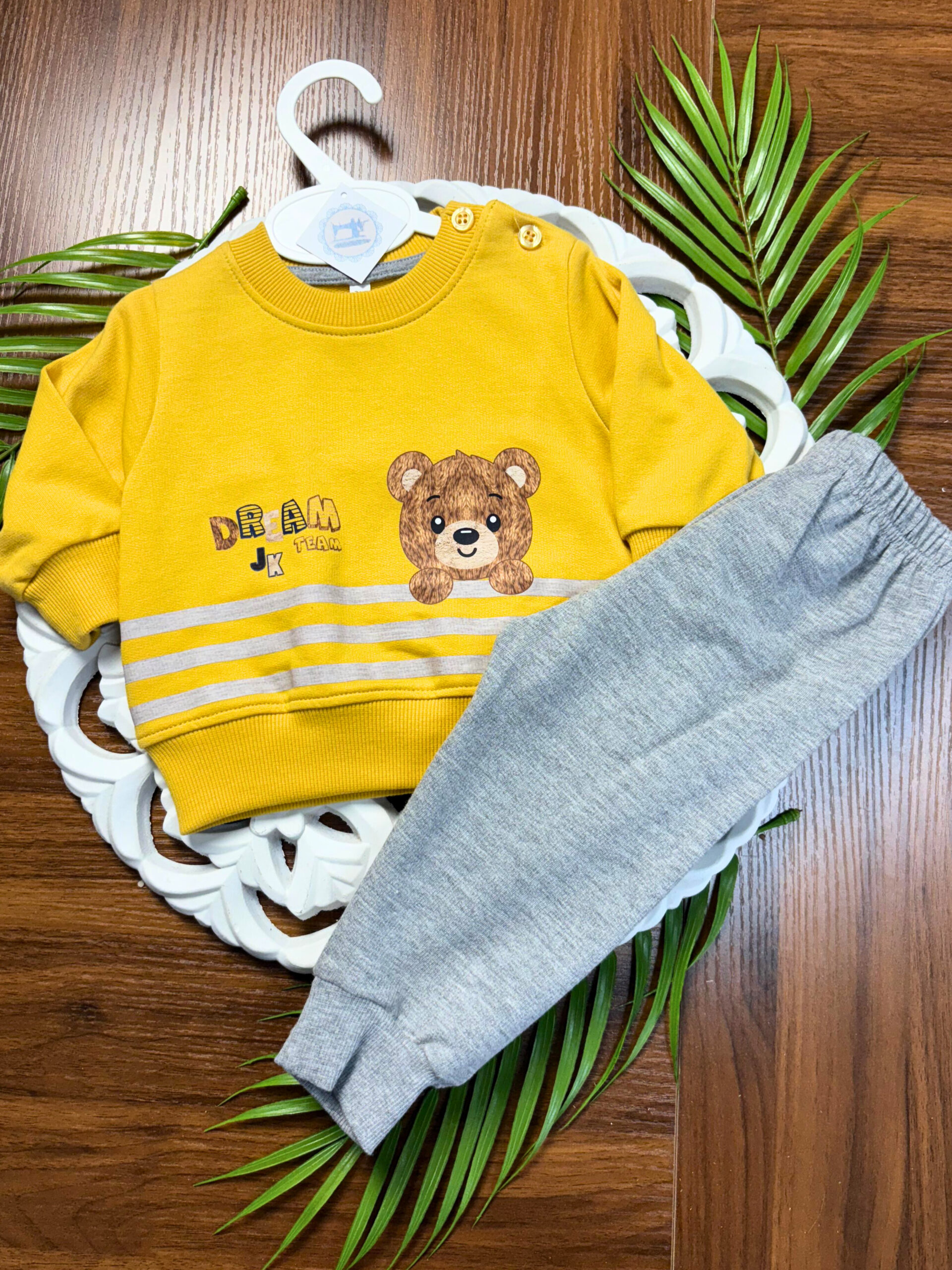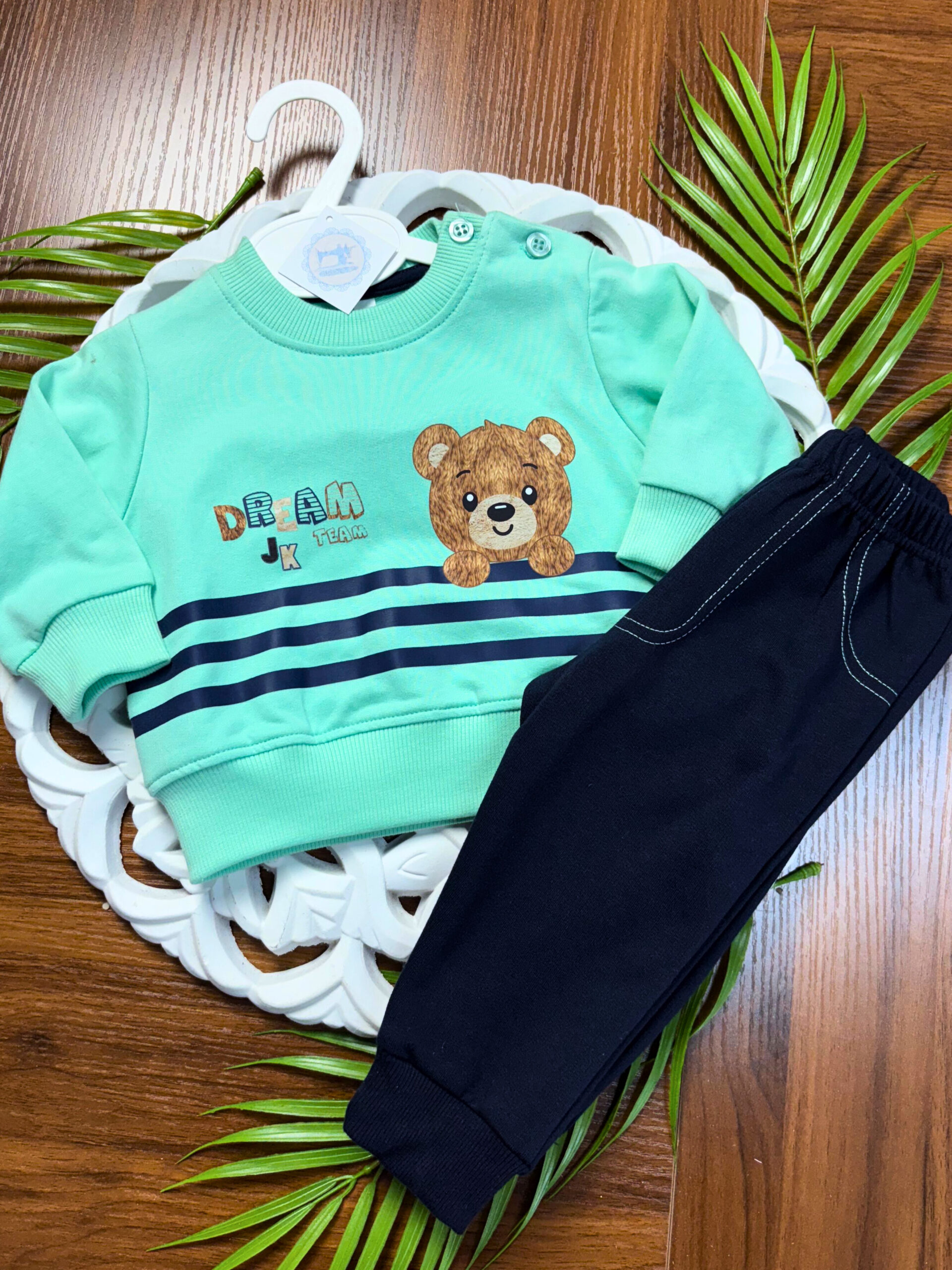 Como o tecido é resistente e lavável na máquina, este conjunto é ideal para o dia a dia, tornando a rotina dos pais muito mais simples.