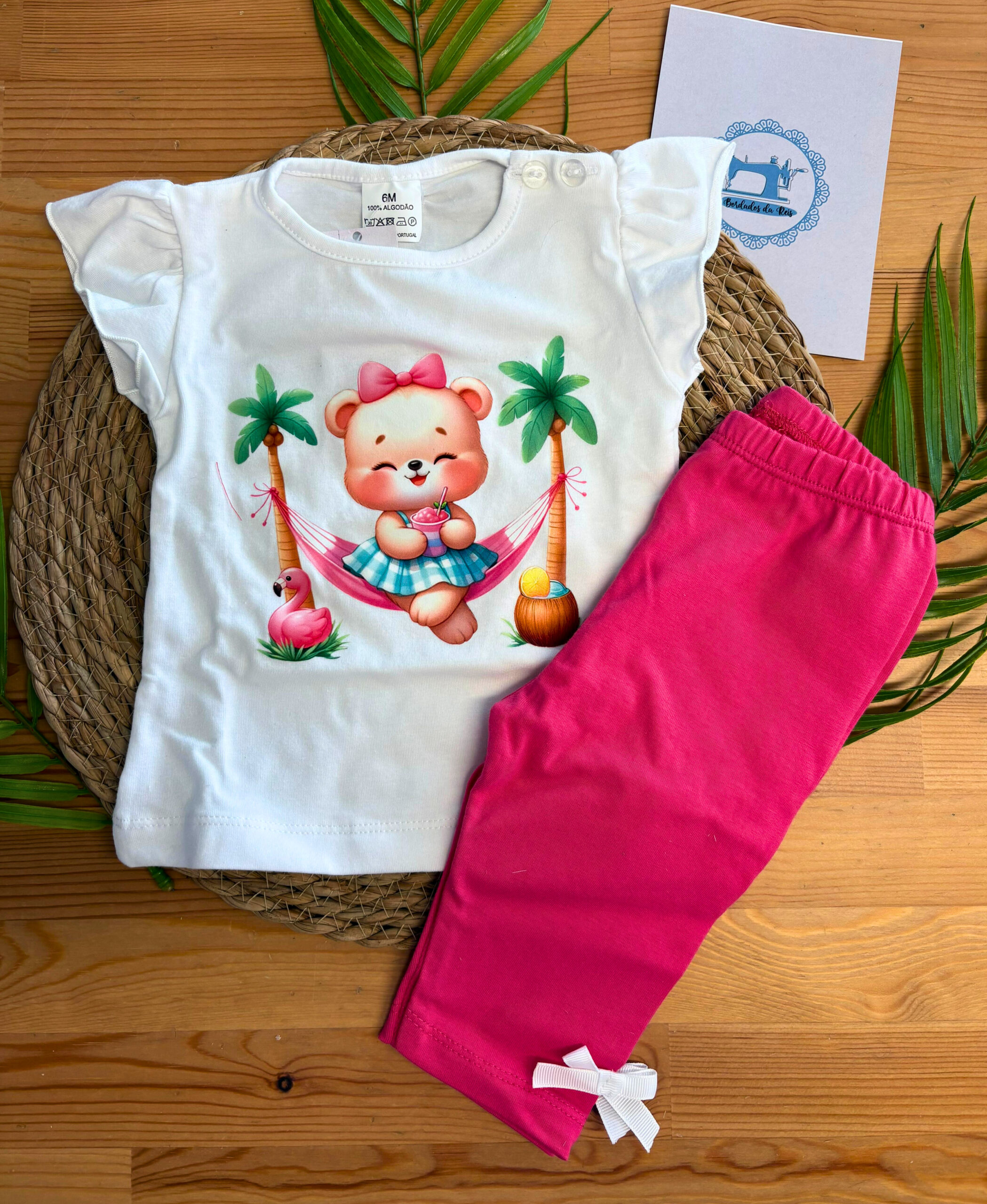 Este conjunto combina um estilo casual com um toque delicado, o que o torna perfeito para diversas ocasiões. Além disso, o padrão Bambies acrescenta charme e personalidade ao visual.