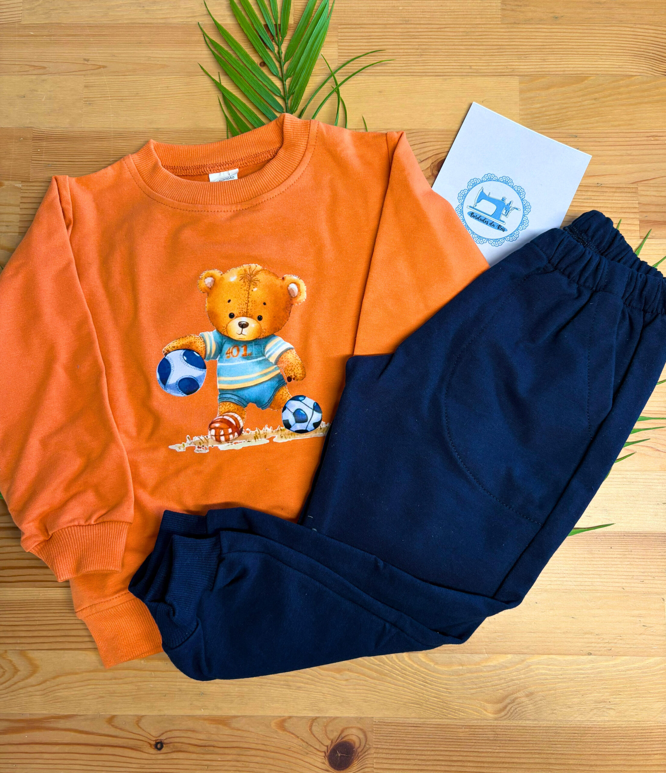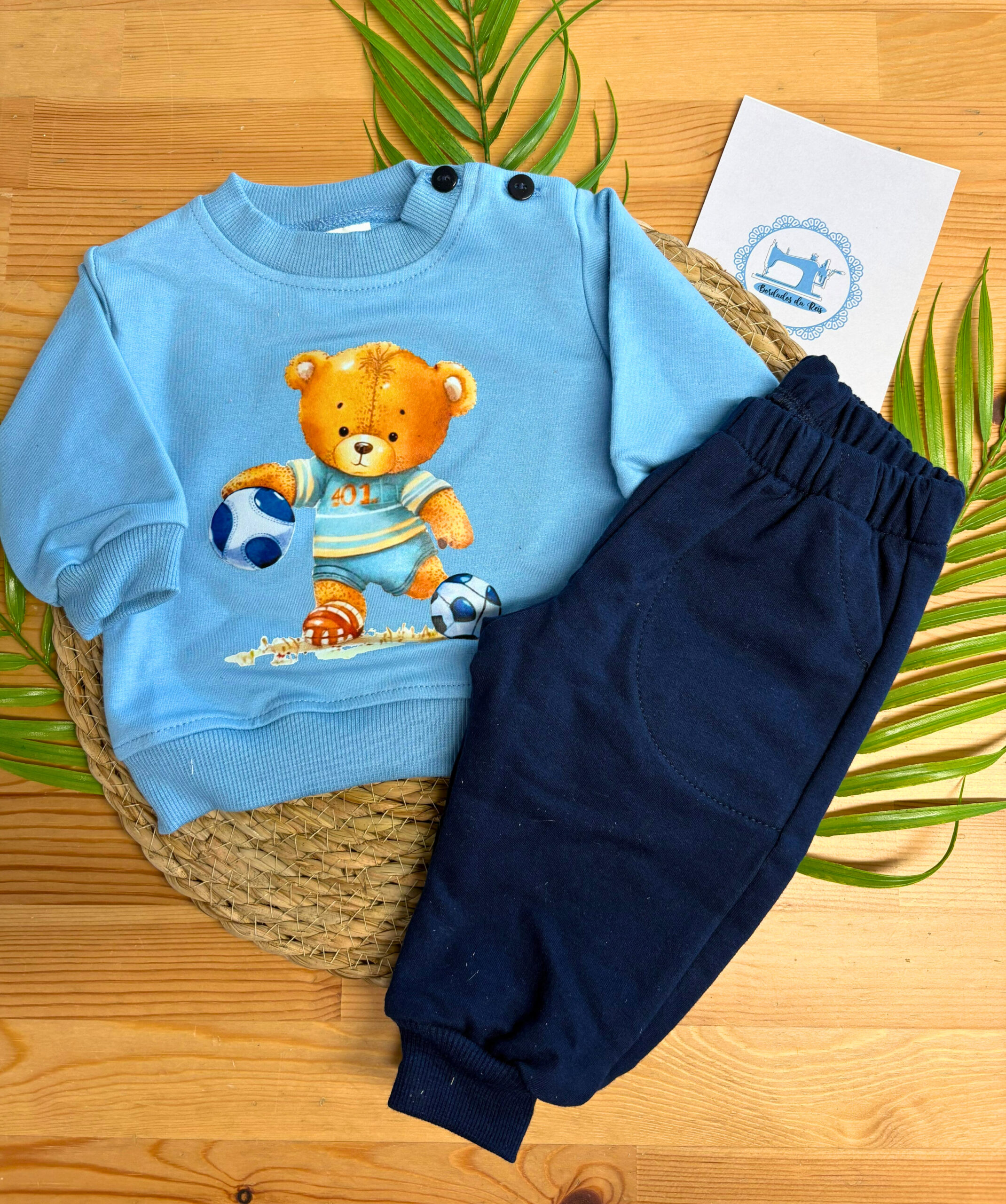 Garanta já o conforto e o estilo do seu menino com o Fato de Treino Ursinho Futebol.