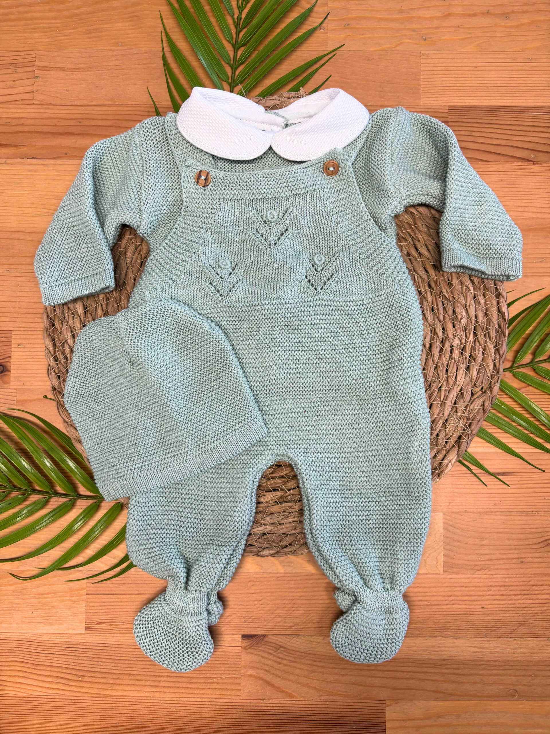 Garanta já a Jardineira com Camisola e Gorro de Malha (Primavera/Verão) e proporcione ao seu bebé conforto, frescura e um look delicado em qualquer ocasião.