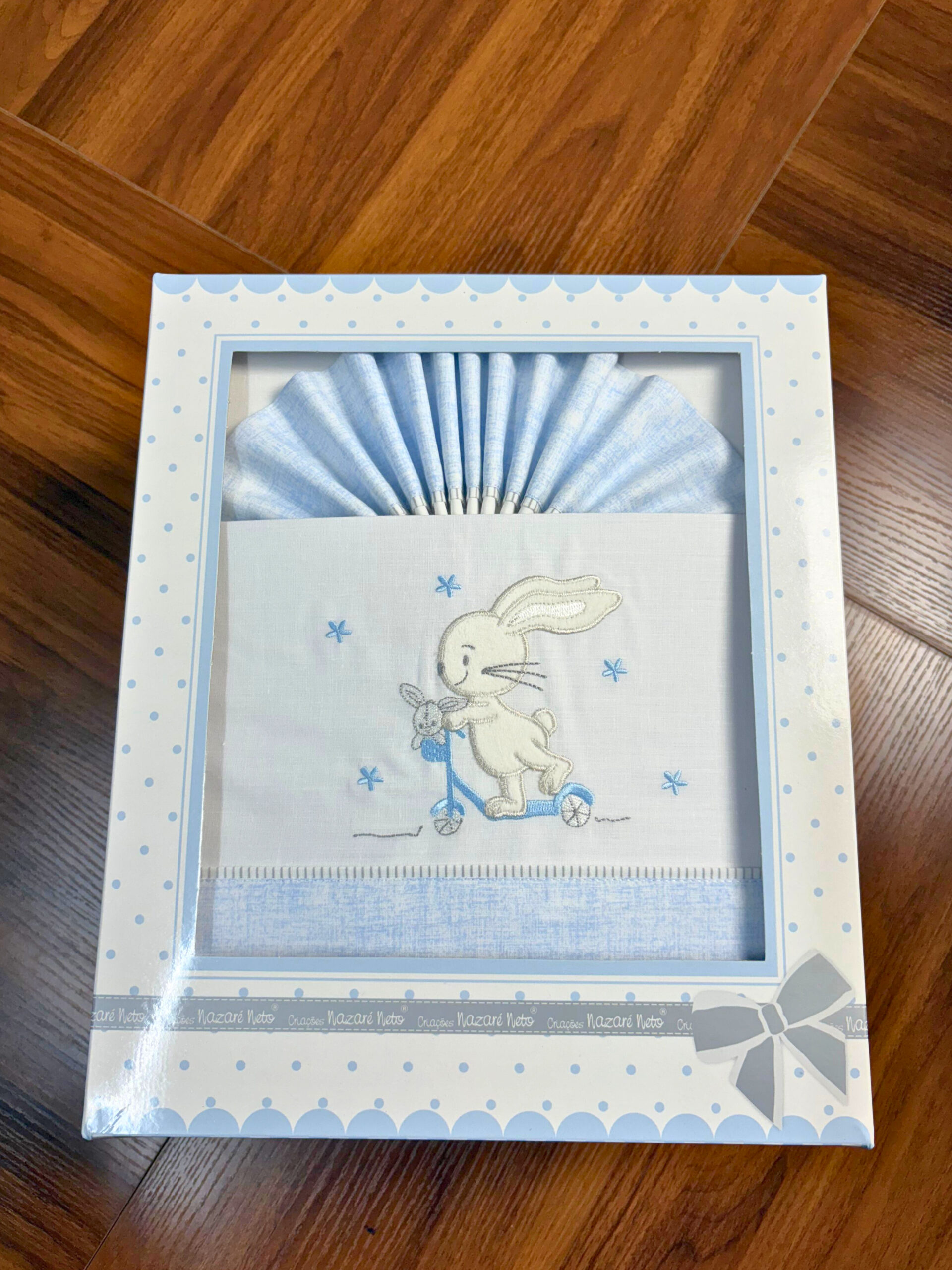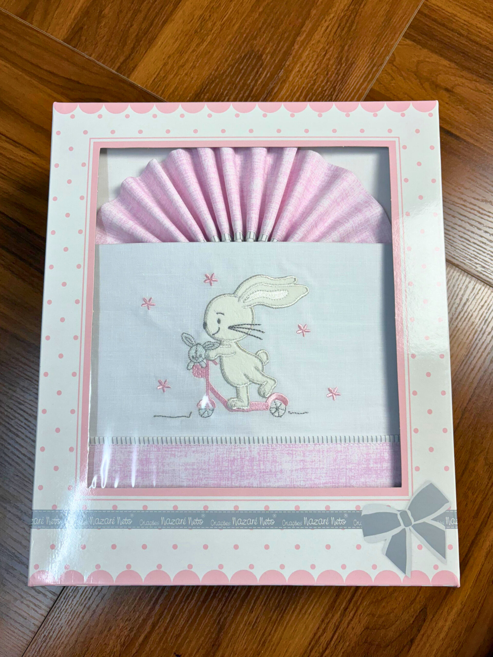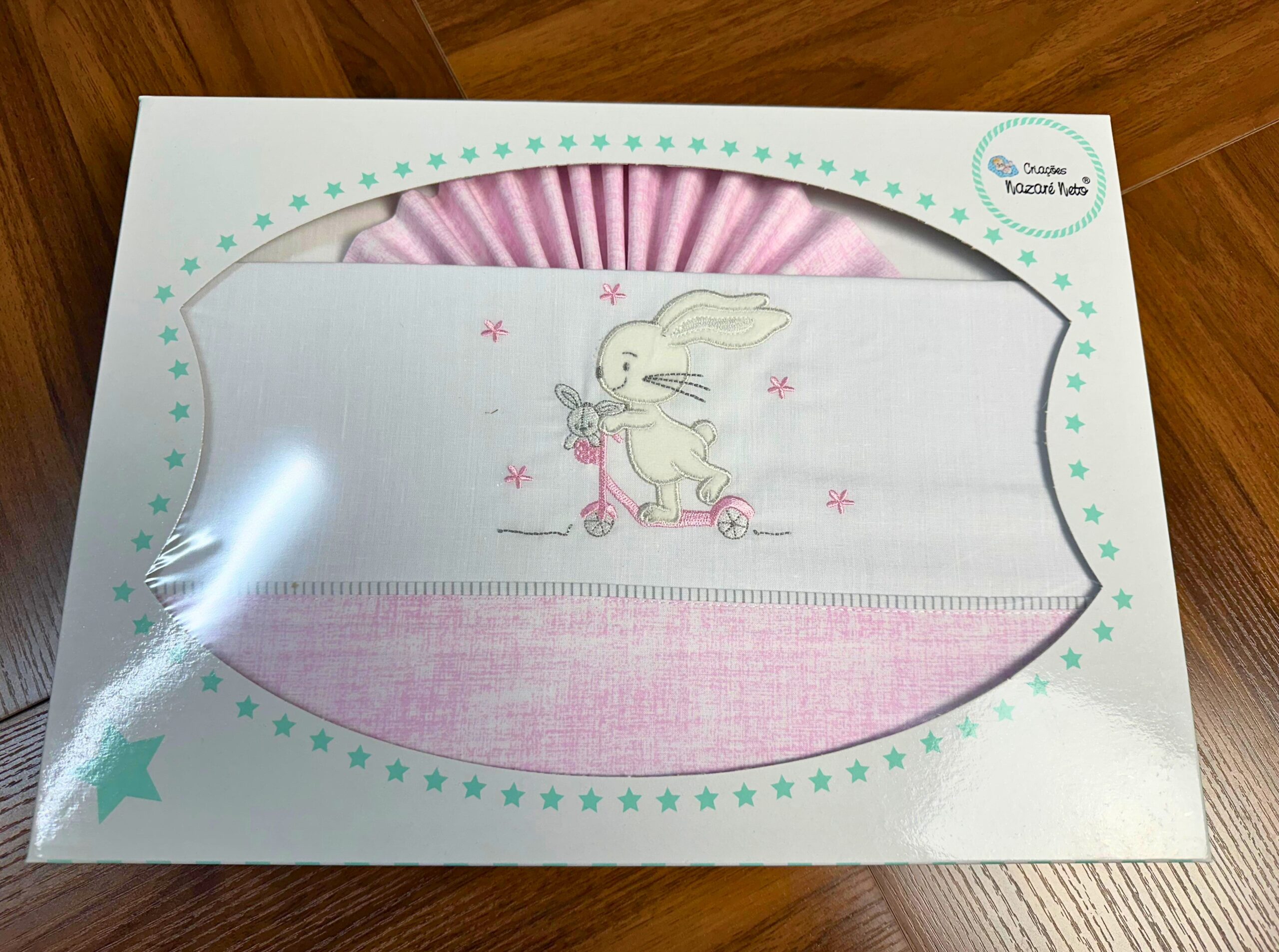 Garanta já o Jogo de Bebé de Algodão – Coelhinho na Trotinete e proporcione o descanso que o seu bebé merece!
