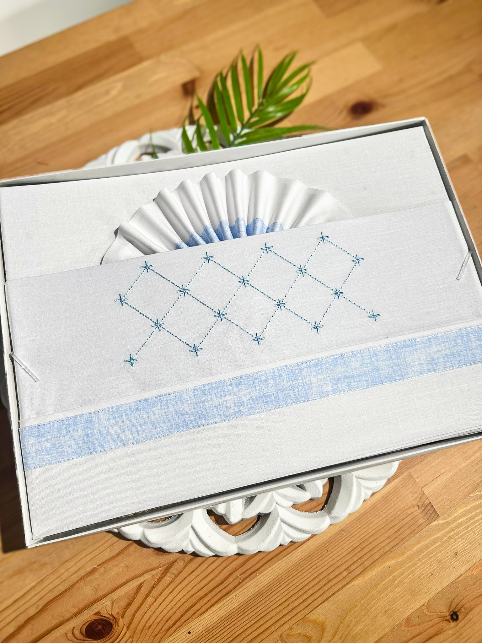 Este conjunto inclui um lençol ajustável, uma fronha e um lençol leve. Cada peça apresenta um padrão elegante. Desta forma, além de proporcionar conforto, traz um charme especial ao berço ou à cama do bebé.