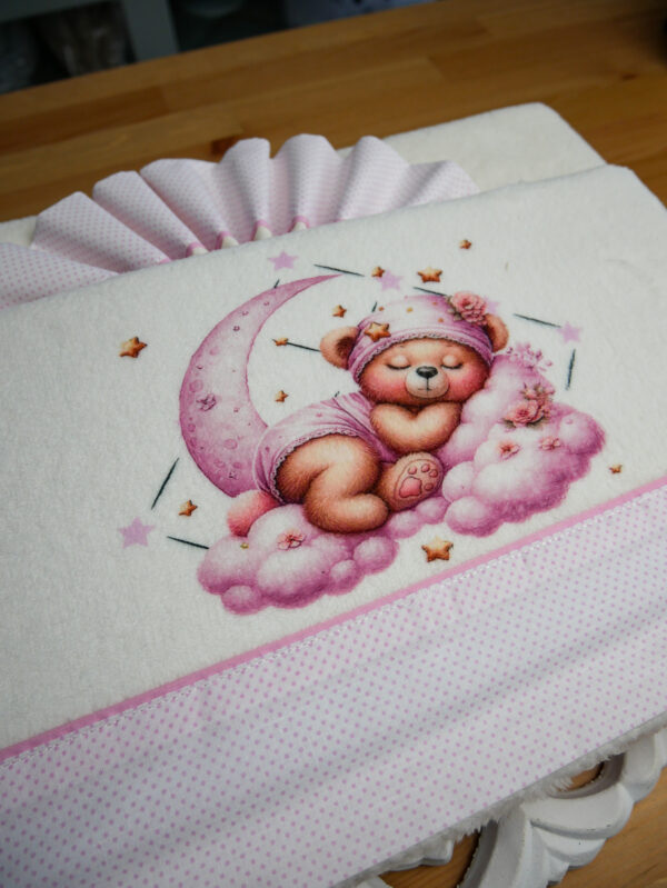 - Conforto e suavidade: Oferece um toque suave e delicado, perfeito para a pele sensível do bebé. Proporciona uma noite de sono confortável e tranquila, ajudando o bebé a descansar de maneira serena.