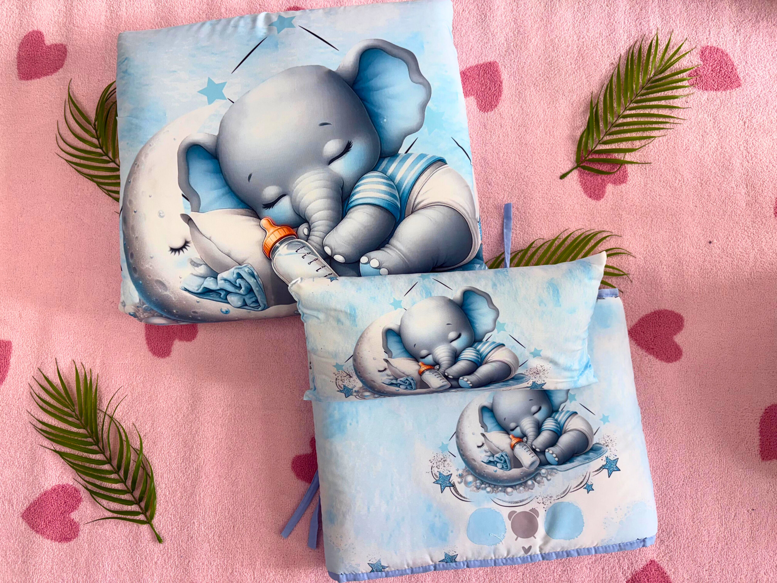 Transforme o berço do seu bebé num verdadeiro refúgio de conforto e segurança! Escolha o Kit Cama Completo – Elefante Dorminhoco e proporcione noites tranquilas ao seu pequeno.