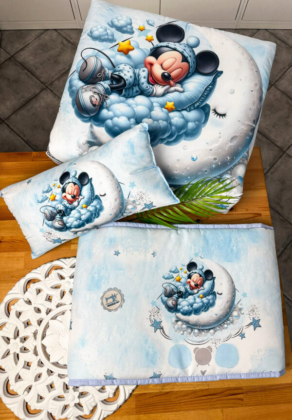 Transforme o berço do seu bebé num verdadeiro refúgio de conforto e segurança! Escolha o Kit Cama Completo – Mickey na Nuvem e proporcione noites tranquilas ao seu pequeno.