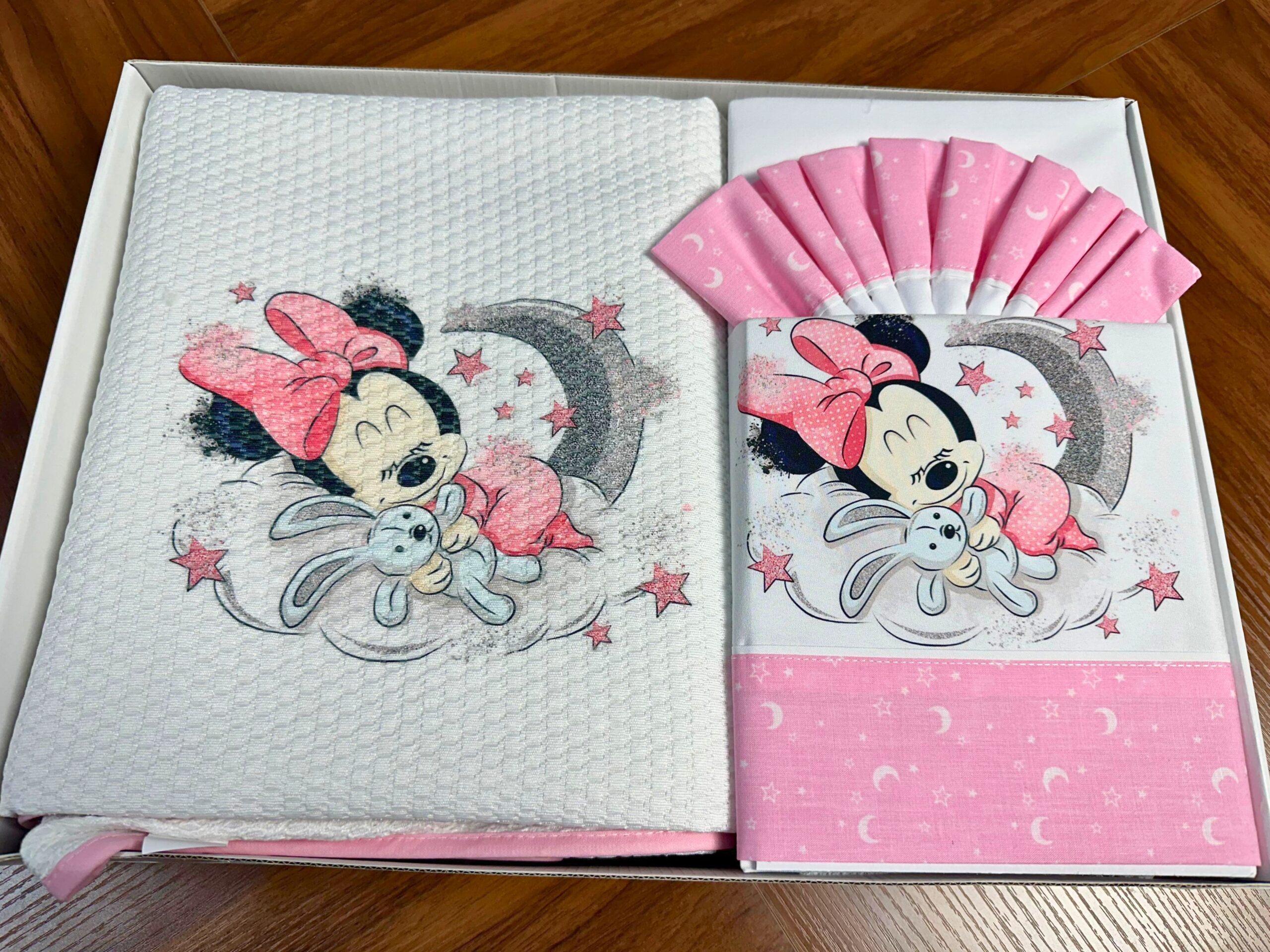 O tema Minnie cria uma atmosfera doce, calma e acolhedora. Por isso, este kit adapta-se facilmente a quartos de bebé modernos, clássicos ou minimalistas, tornando-se uma excelente escolha tanto para meninos como para meninas.