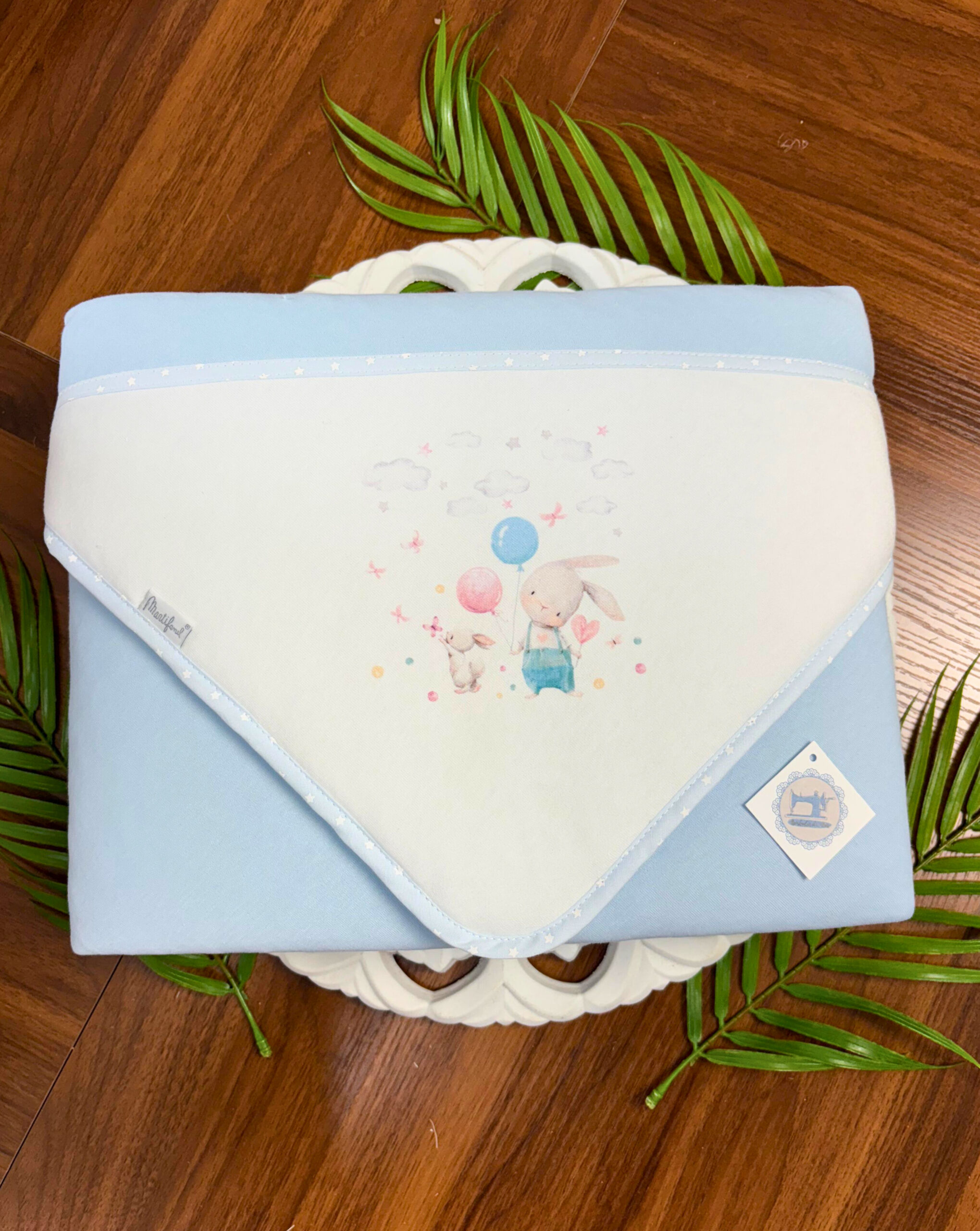 A manta de verão Coelhinho com Balão é a escolha ideal para quem procura uma peça leve, elegante e funcional durante a estação mais quente do ano. Desde logo, destaca-se pelo seu acabamento delicado em folho, que acrescenta um toque sofisticado e intemporal. Além disso, graças ao seu tecido respirável, proporciona conforto sem provocar excesso de calor.