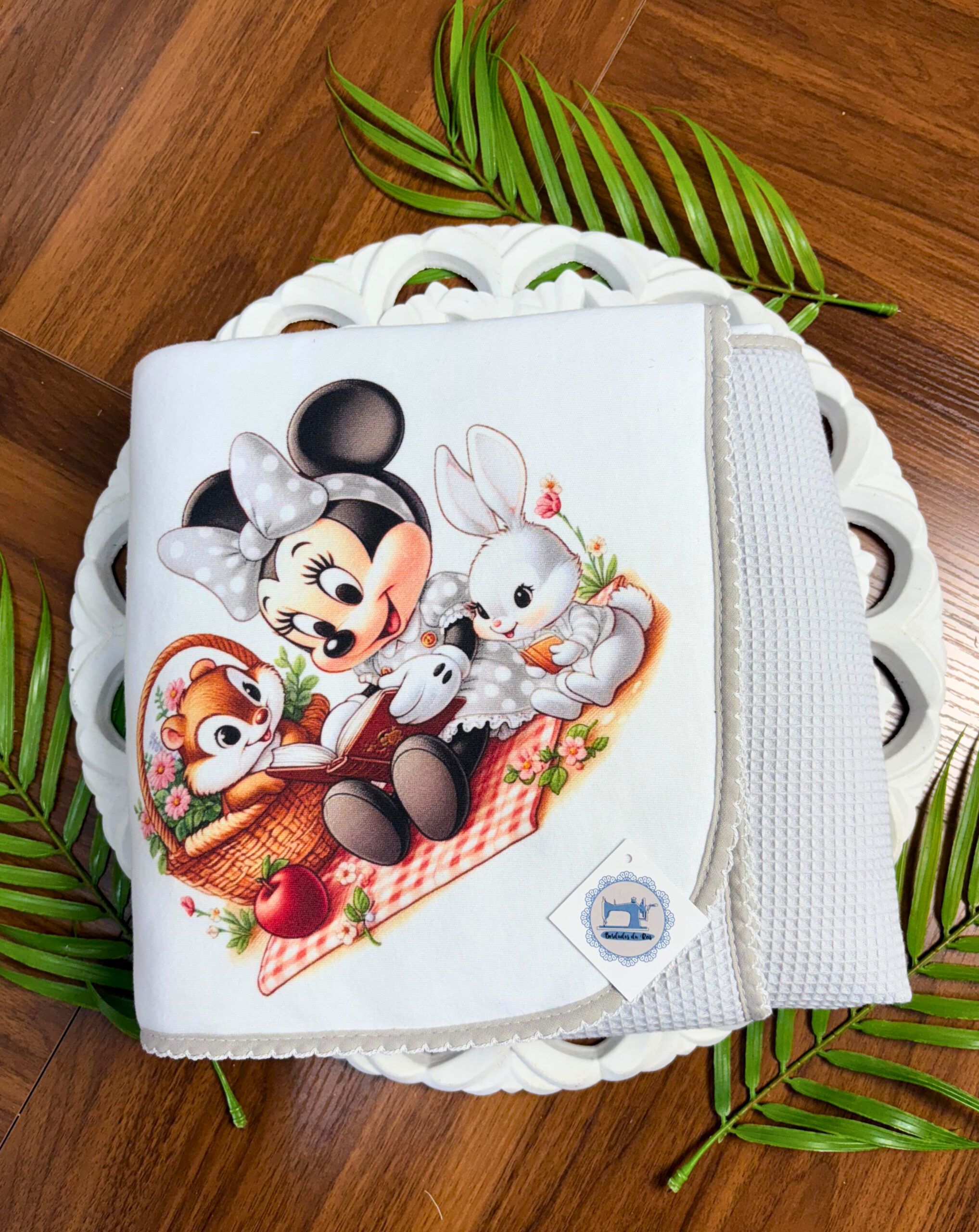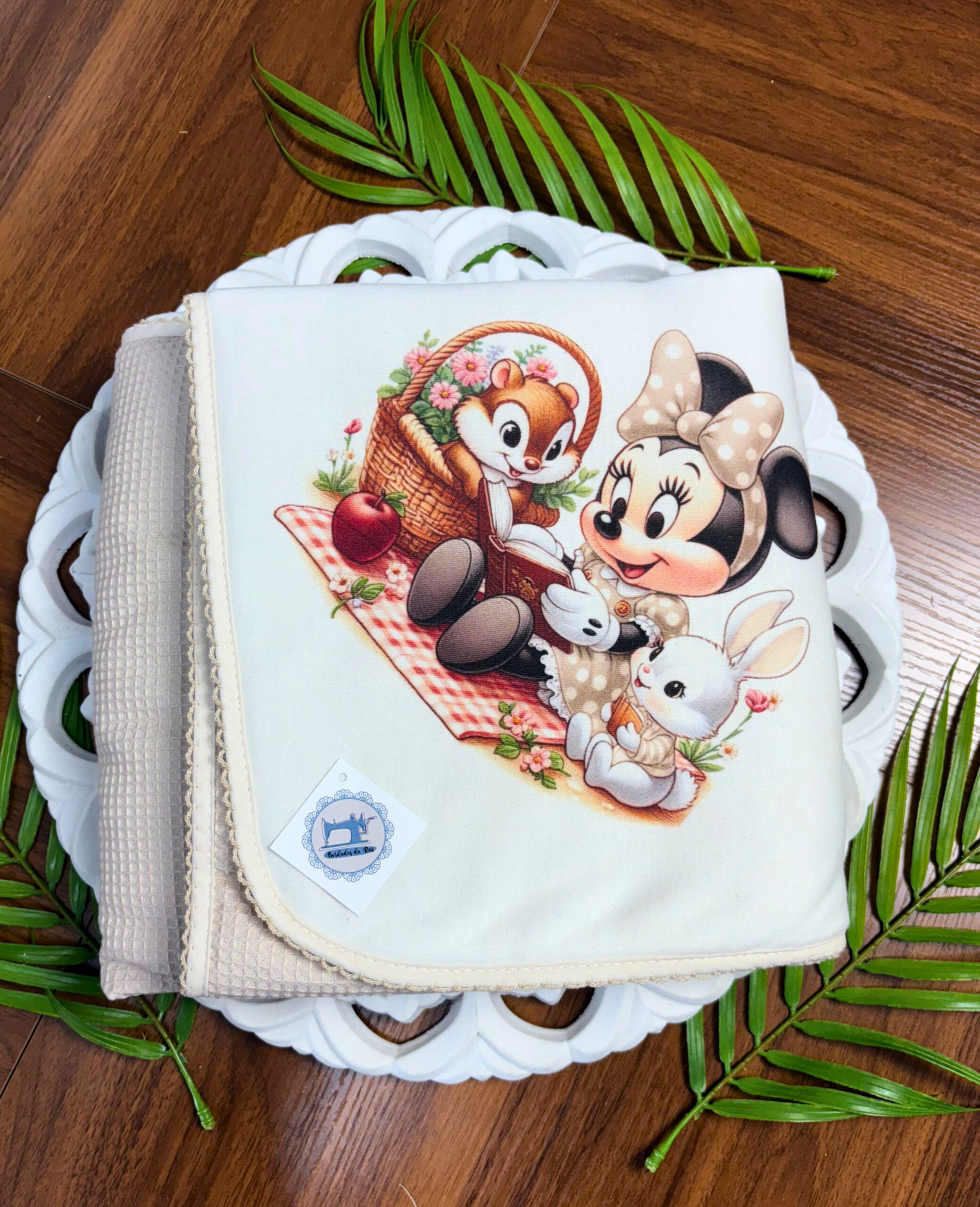 A manta de verão Minnie/Mickey Pic-Nic é a escolha ideal para quem procura uma peça leve, elegante e funcional durante a estação mais quente do ano. Desde logo, destaca-se pelo seu acabamento delicado em folho, que acrescenta um toque sofisticado e intemporal. Além disso, graças ao seu tecido respirável, proporciona conforto sem provocar excesso de calor.