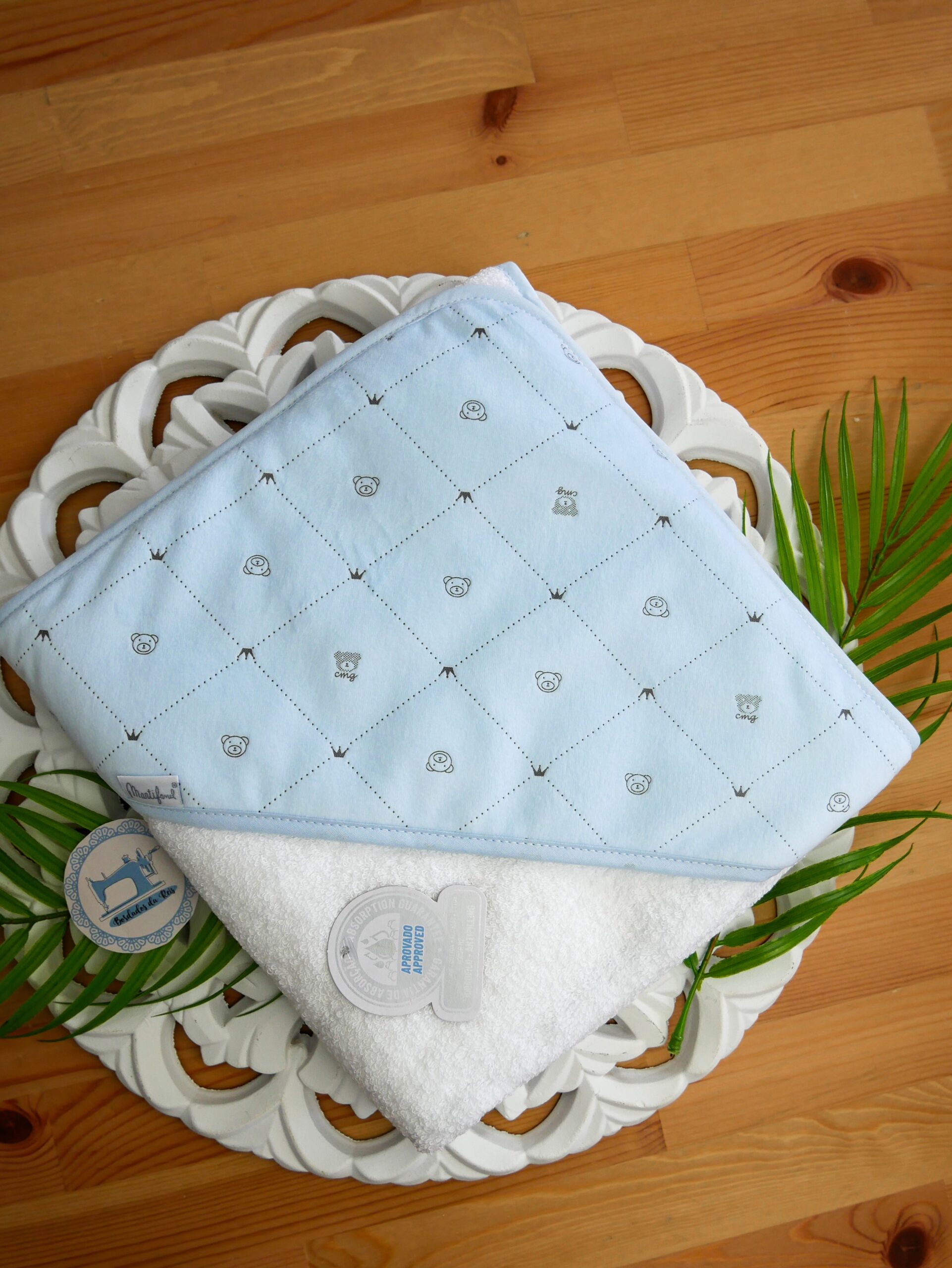 - Superfície suave e delicada: A toalha de banho – Ursinhos e Coroas é especialmente desenhada para ser suave com a pele sensível do bebé, evitando irritações ou desconforto.