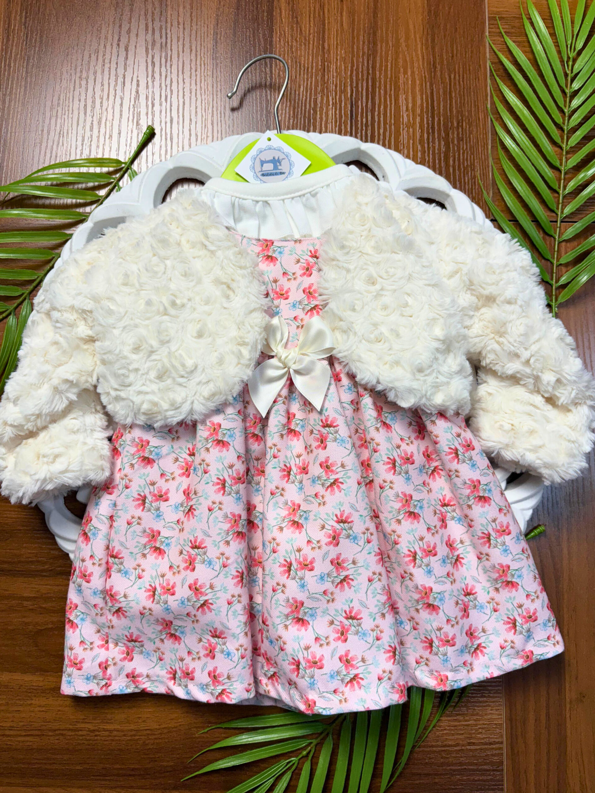 Garanta já o Vestido Floral com Bolero de Pelo e proporcione à sua bebé um look delicado, quente e cheio de elegância para momentos especiais.